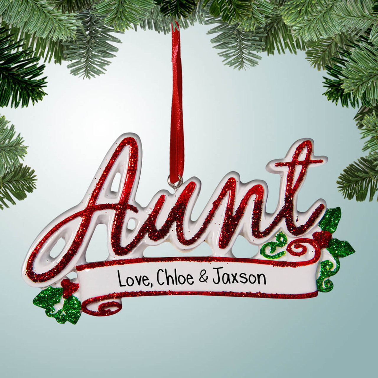 We're not quite sure that you want to hang out with your aunt under the mistletoe, but this personalized aunt ornament will look stunning under your tree this year! She'll be so happy that you just might get that kiss you were looking to avoid!