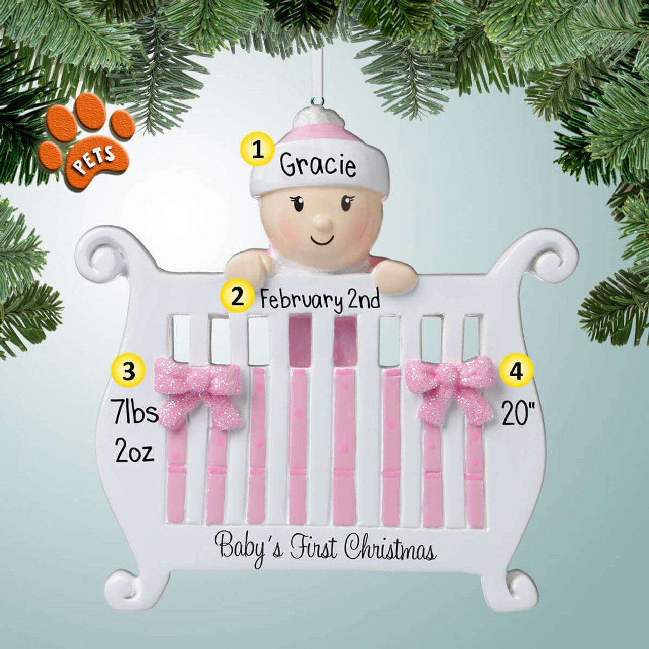 Personalized Baby Girl in Crib 1st Christmas Ornament