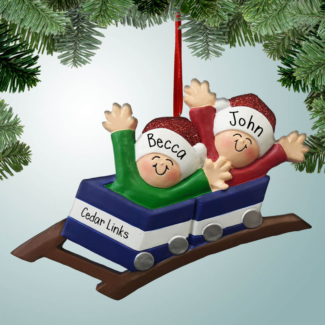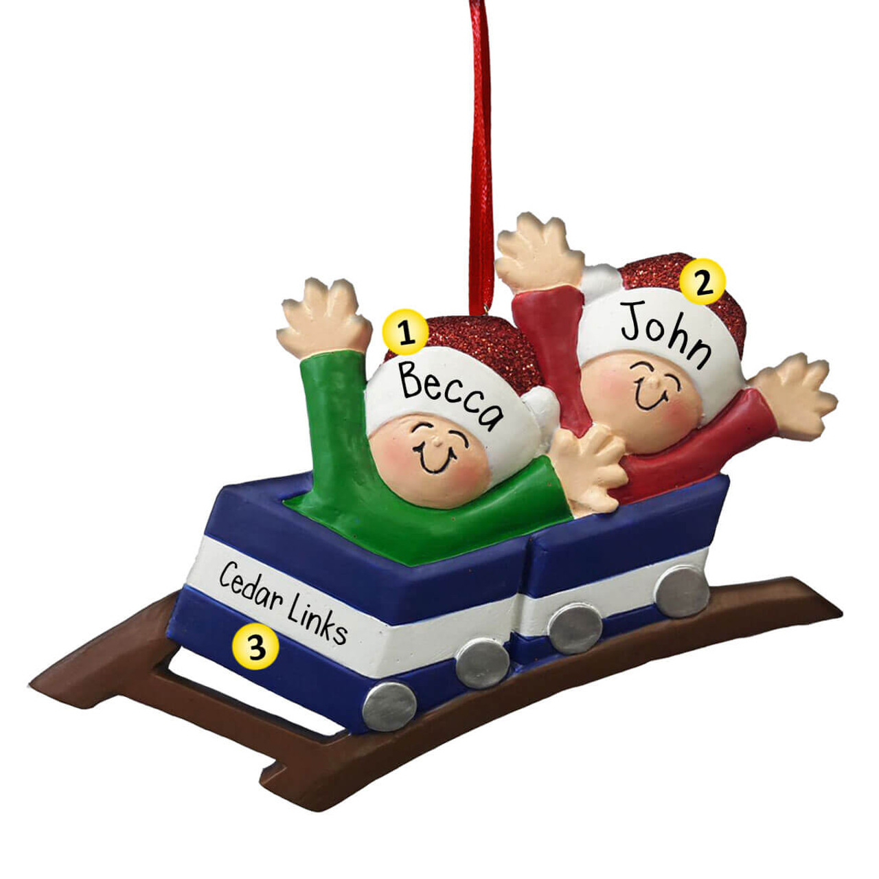 Get your hands in the air and enjoy the fair! Are you and your partner roller coaster enthusiasts? If so, then this high-speed thrilling personalized Christmas ornament must absolutely do a double corkscrew right onto your tree this season!