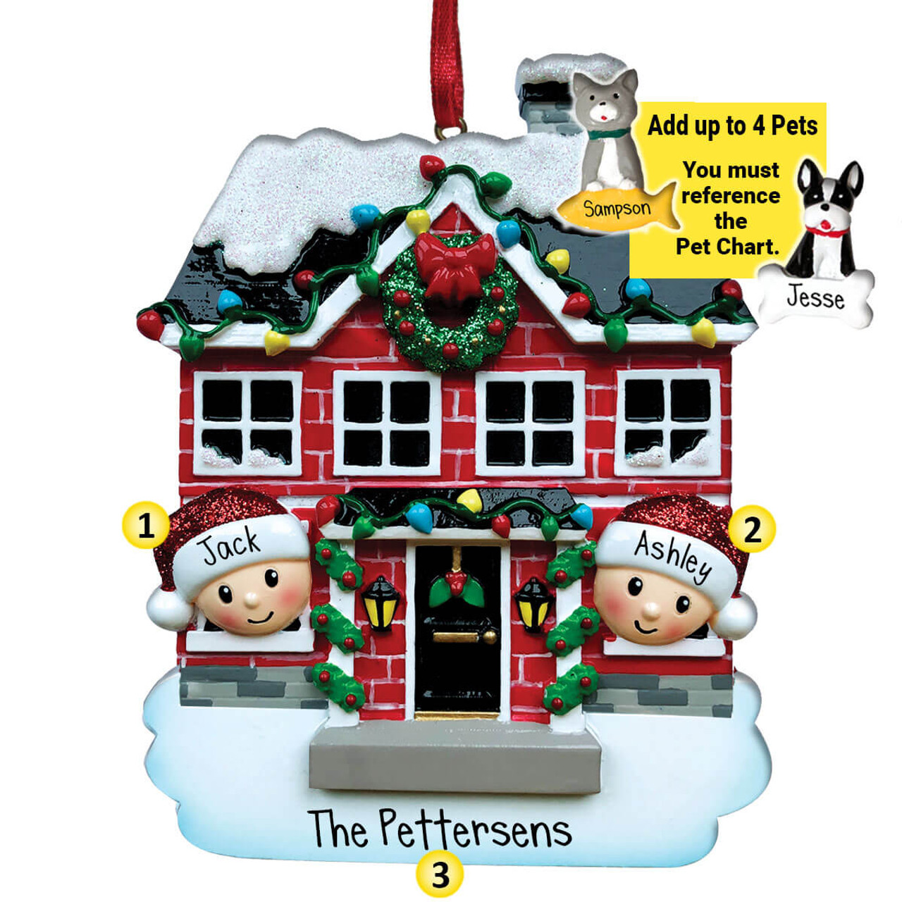 You have the option of adding up to 4 pets that we will arrange on the ornament. You do not have to add any pets. This ornament is for a Family of 2 only.