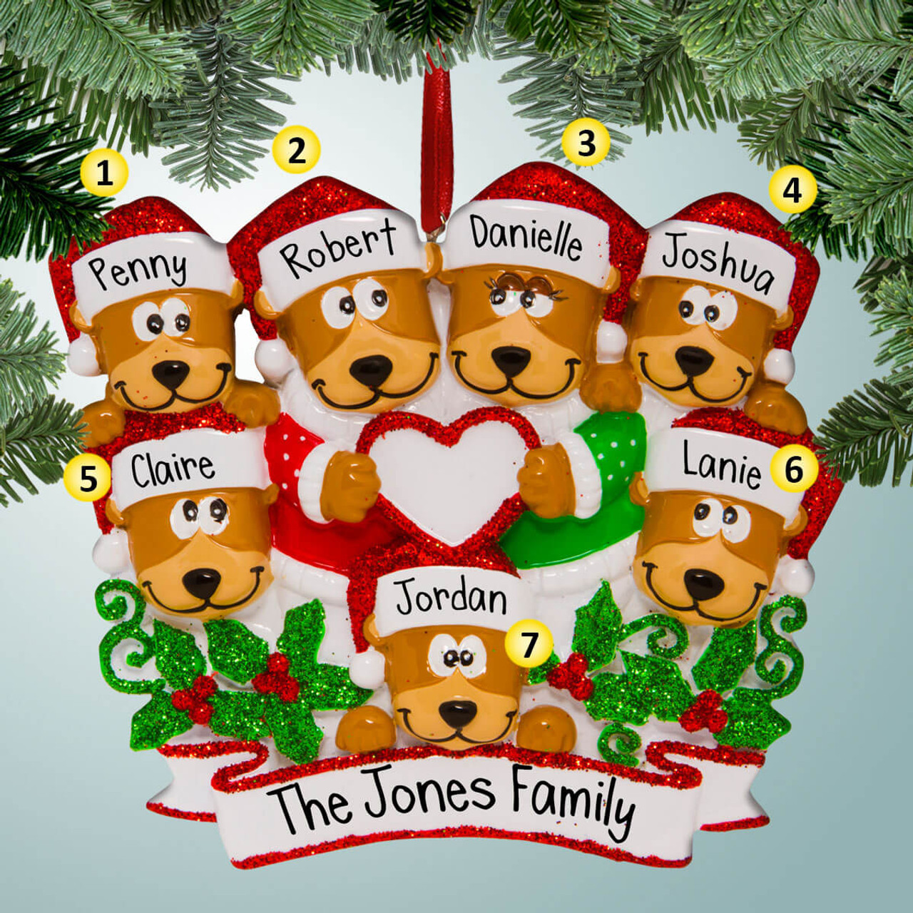 Brown Bear, Brown Bear, What do you See? I See a Large Family of Seven Looking at Me! If you have a large family that is just coming out of hibernation and is ready for the holidays, then this personalized Christmas ornament is the perfect choice for you and the rest of the bears!