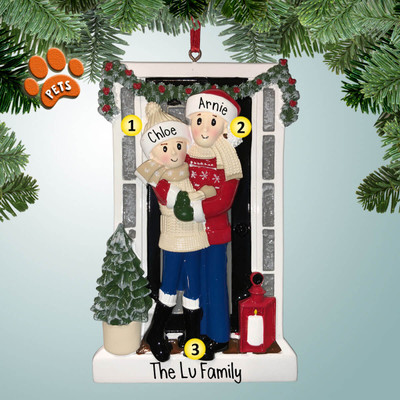 Now here is a nice portrait of just the two of you all dressed for the holidays and showing off your decorated home! This personalized ornament makes a great gift for a couple who just moved into a new home, or someone that just loves to decorate for Christmas!