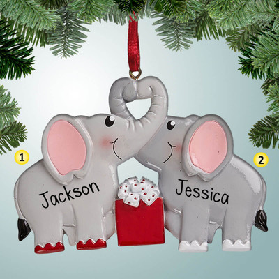 Personalized Elephant Couple Holding Trunks Christmas Ornament