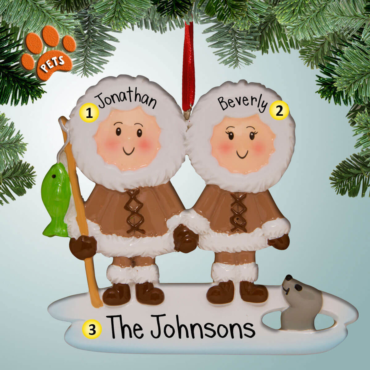 We know that winter can be cold, but this is a bit extreme, don't you think? You don't have to be indigenous to the north to want to bundle up for the cold in Eskimo clothing. If you and your partner love to bundle up in native attire from northern Canada and Alaska, then this personalized Christmas ornament gives your tree the perfect look this season!