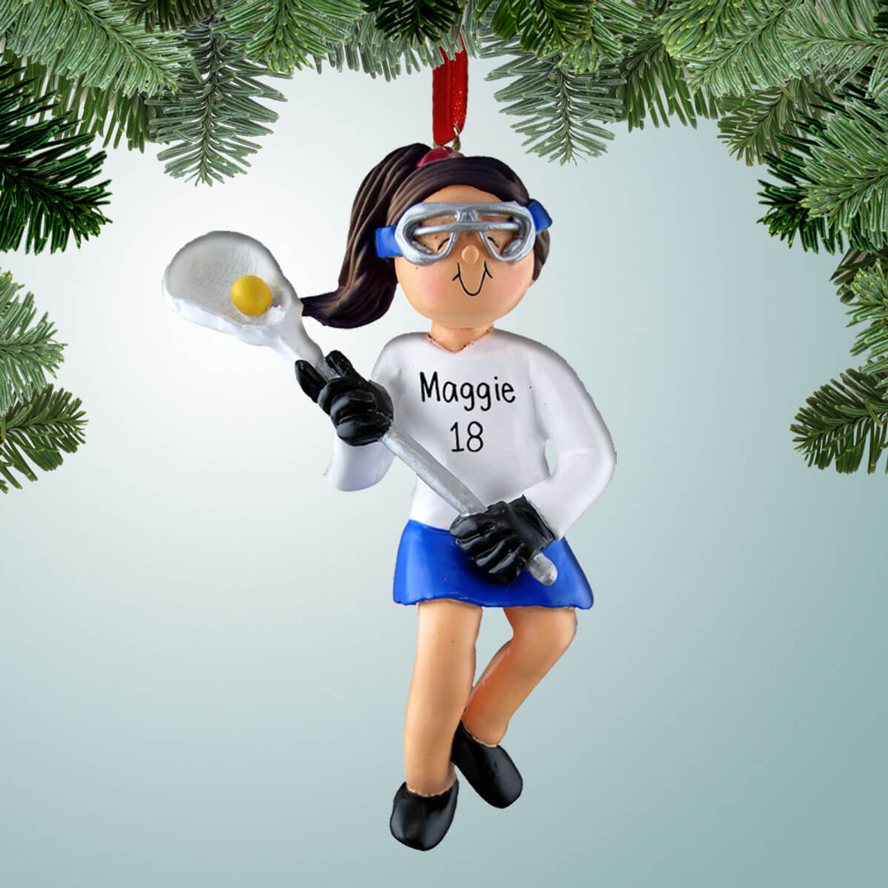 Personalized Female Lacrosse Player with Yellow Ball - Brown Christmas Ornament