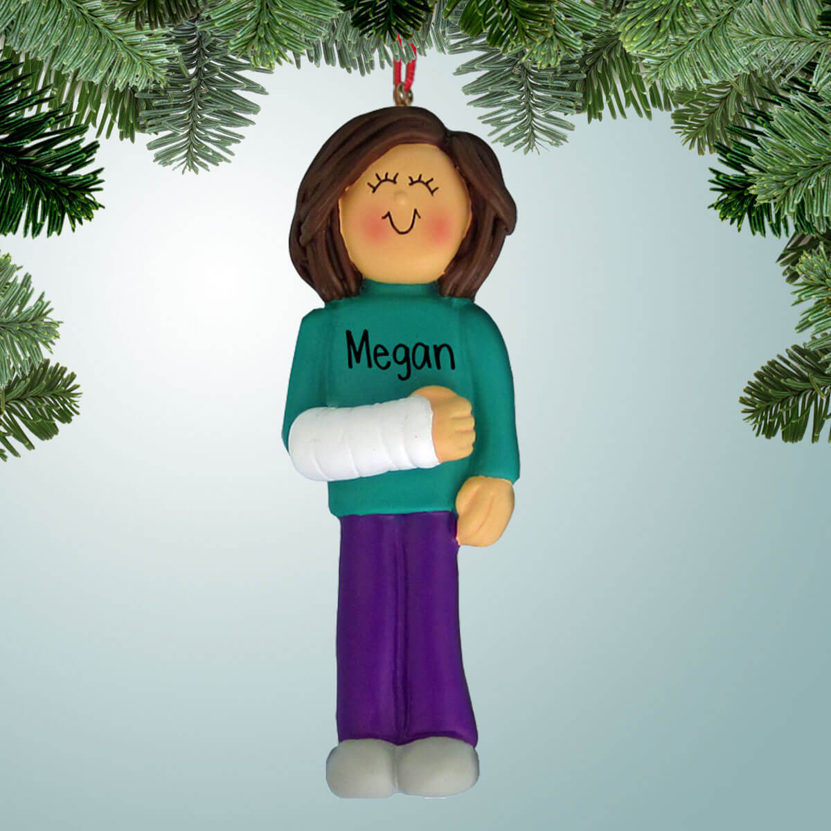 Personalized Female with Broken Arm - Brown Christmas Ornament