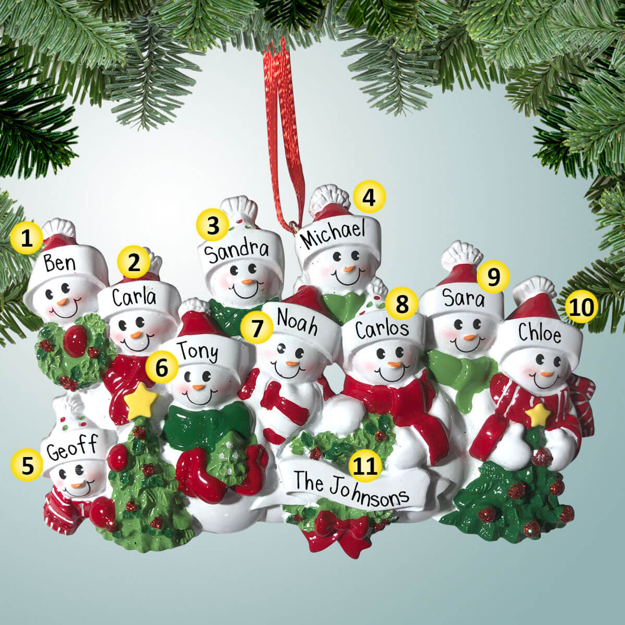 Personalized Festive Snowman Family - 10 Christmas Ornament