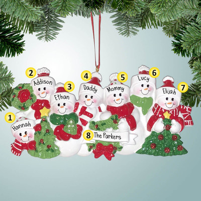 Personalized Festive Snowman Family - 7 Christmas Ornament