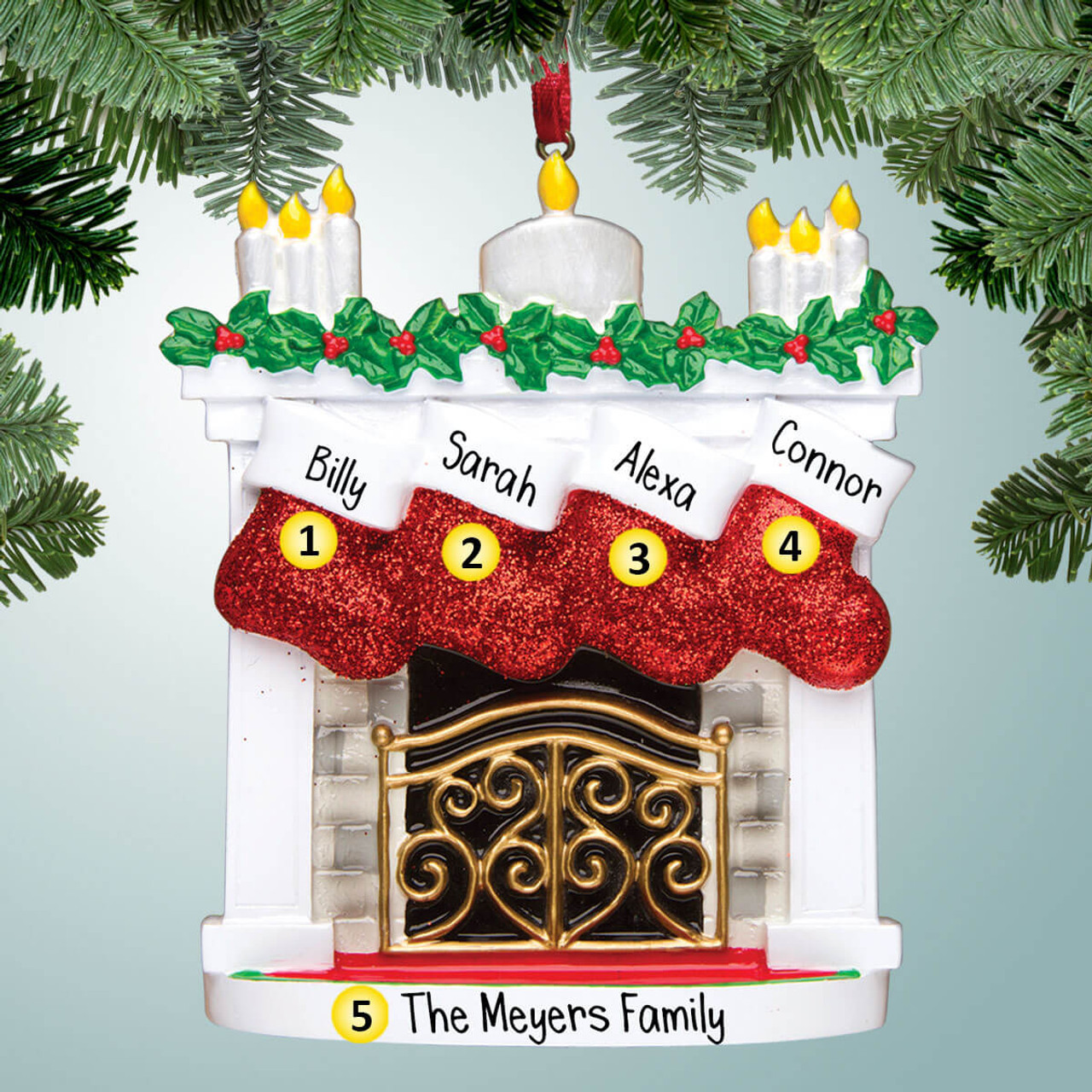 Personalized Fireplace with Red Socks and Candles - 4 Christmas Ornament