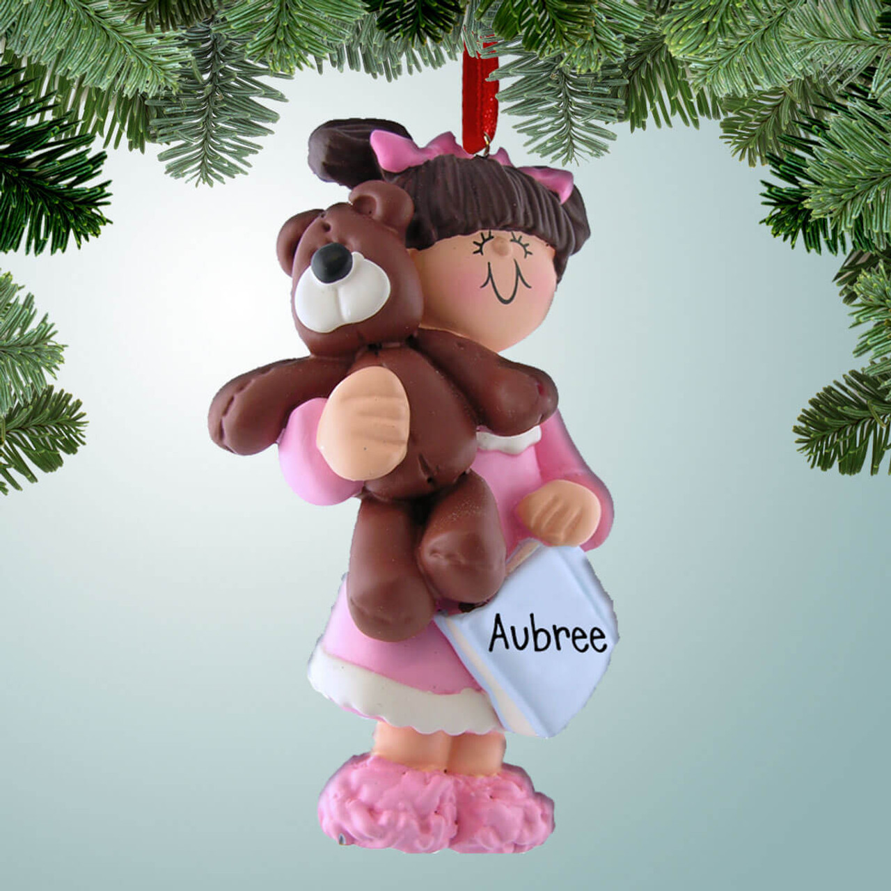Personalized Girl Holding Teddy Bear - Brown Hair Christmas Ornament