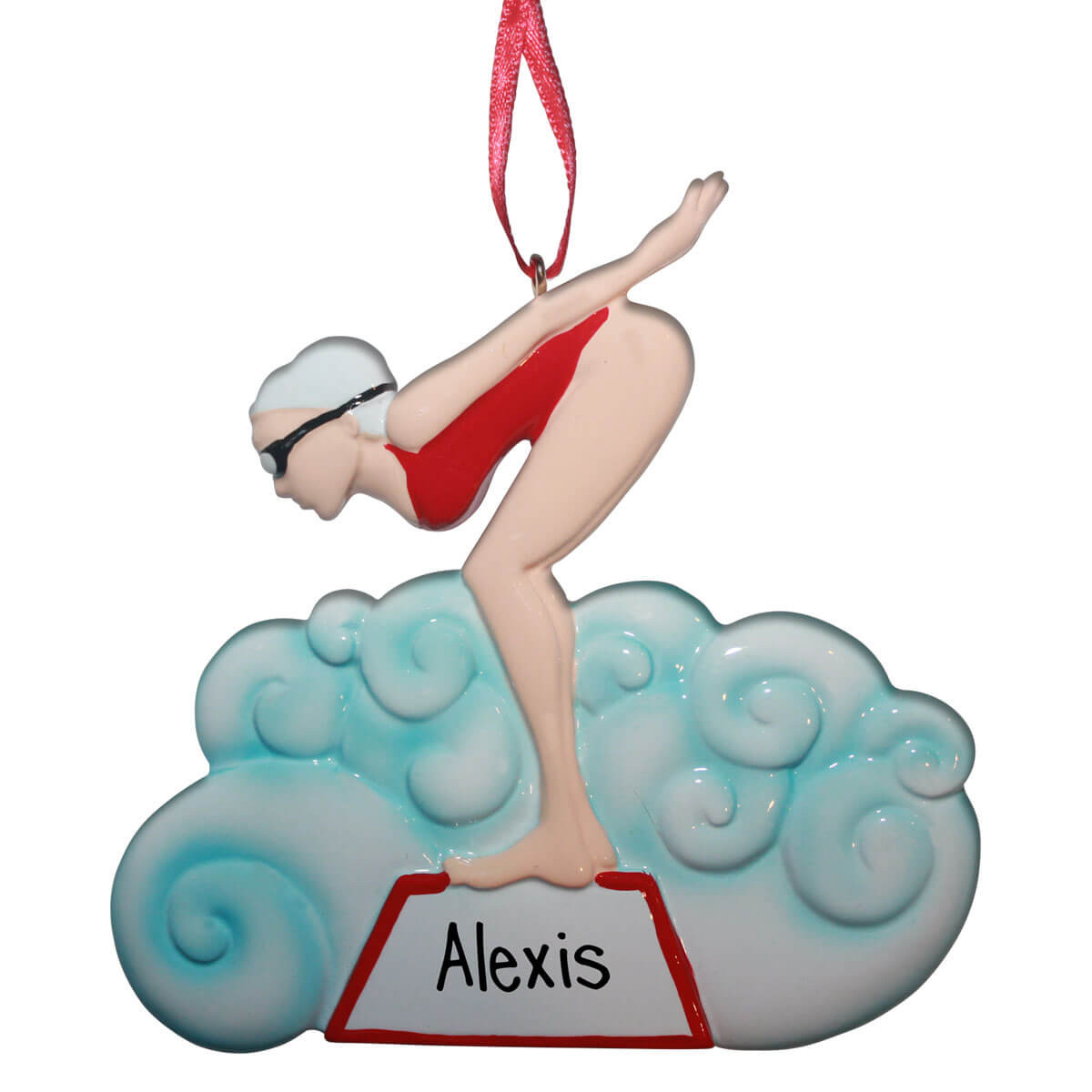 Ready, set, go! With the perfect form that this swimmer is demonstrating, this personalized Christmas ornament is guaranteed to make a big splash on your Christmas tree this season! Just make sure there is plenty of water under the tree in case she gets the urge to dive in!