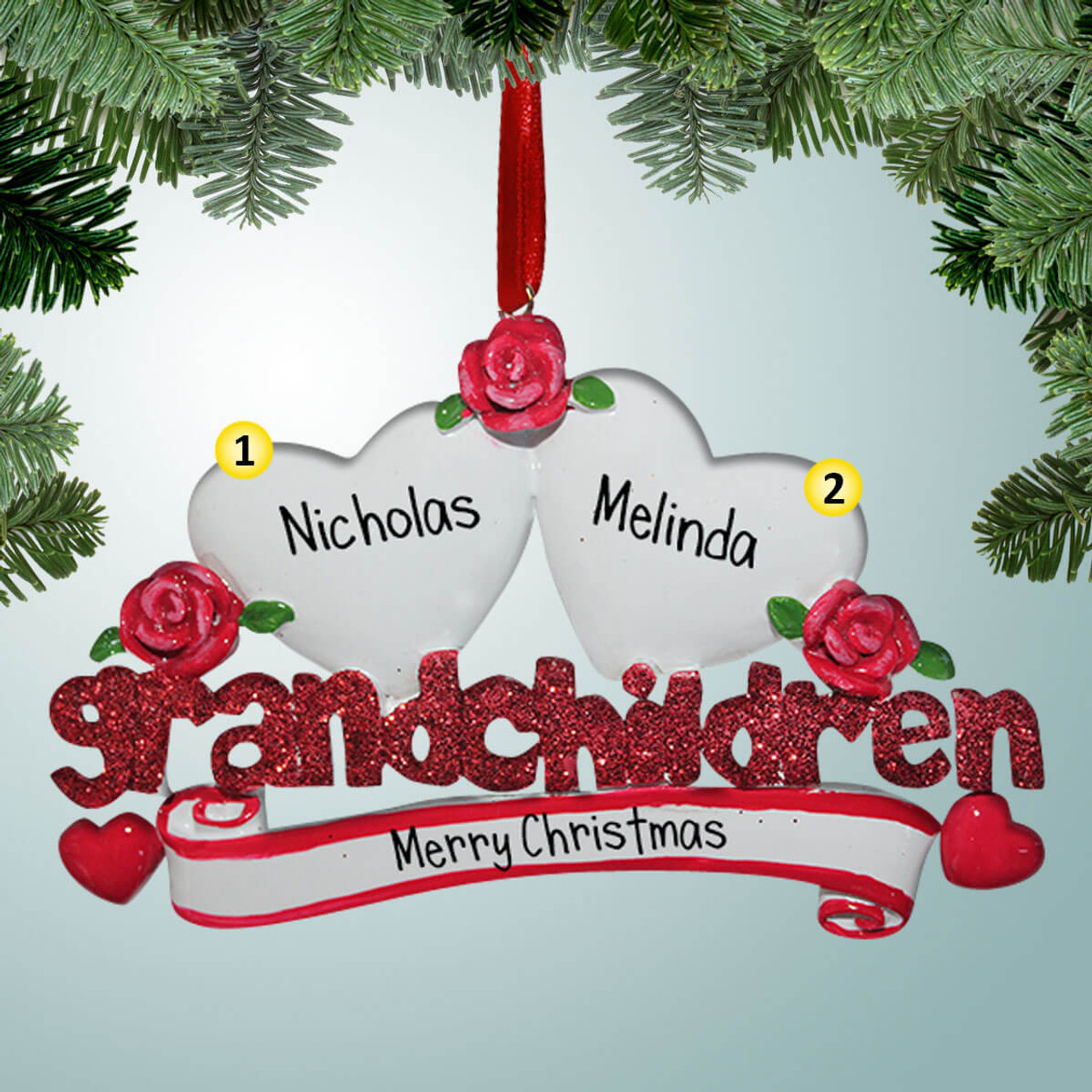 Personalized Grandchildren with 2 Hearts Christmas Ornament