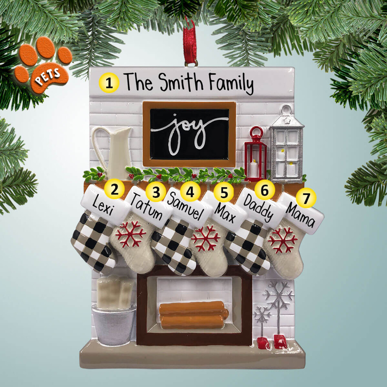 Personalized Joy Fireplace Family - 6 Christmas Ornament
