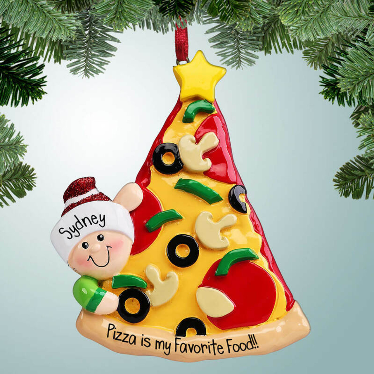 Personalized Kid with Slice of Pizza Christmas Ornament