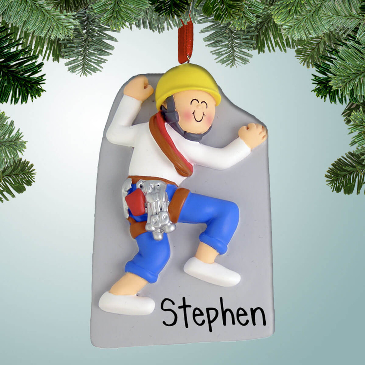 Personalized Male Rock Climber with Yellow Hat Christmas Ornament
