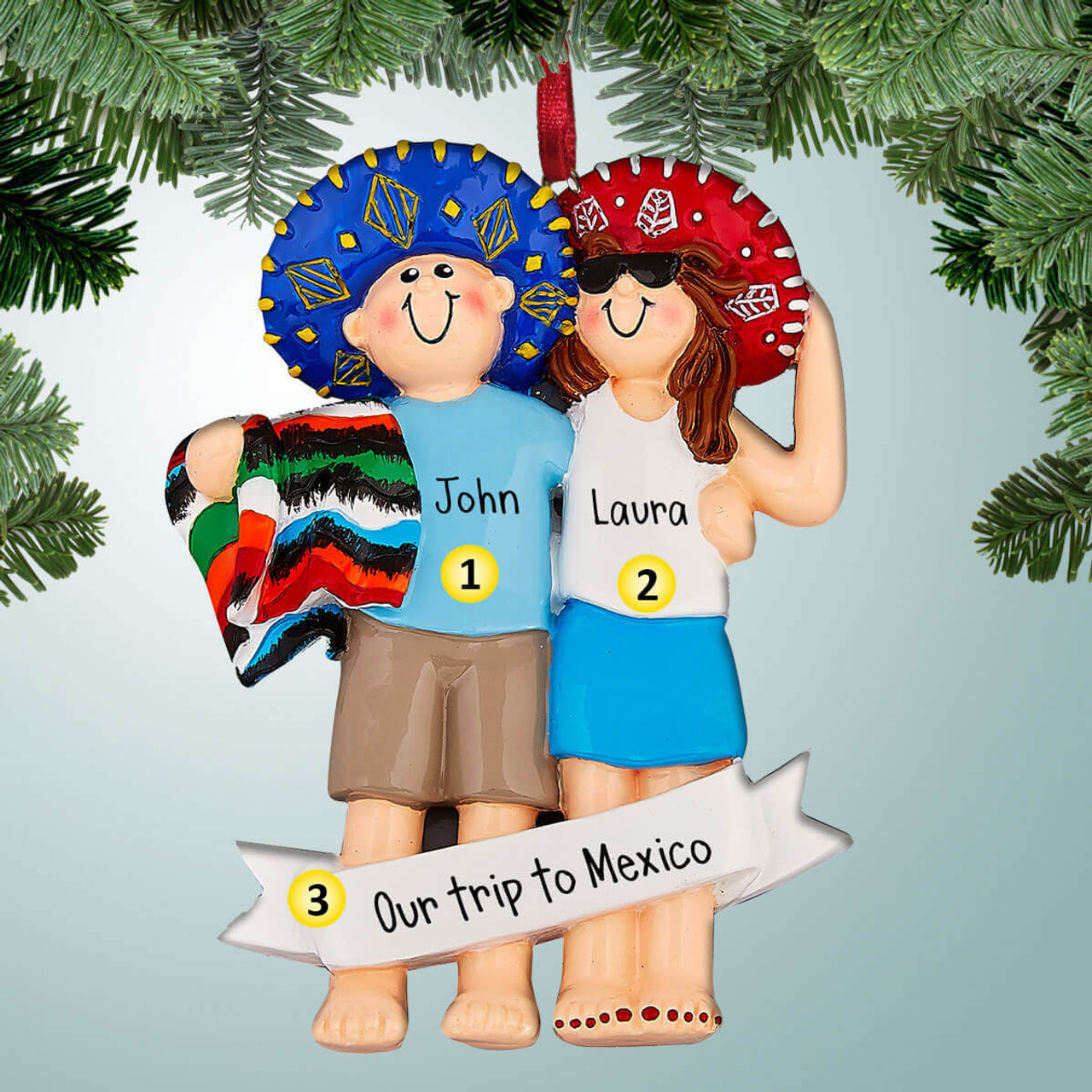 This couple is well on their way to checking off all of the major things to do on their Mexican vacation. They have the sombreros, the Mexican blanket, and enough amazing memories to last a lifetime. The only thing left to do is to purchase a personalized ornament they can proudly place on their tree!