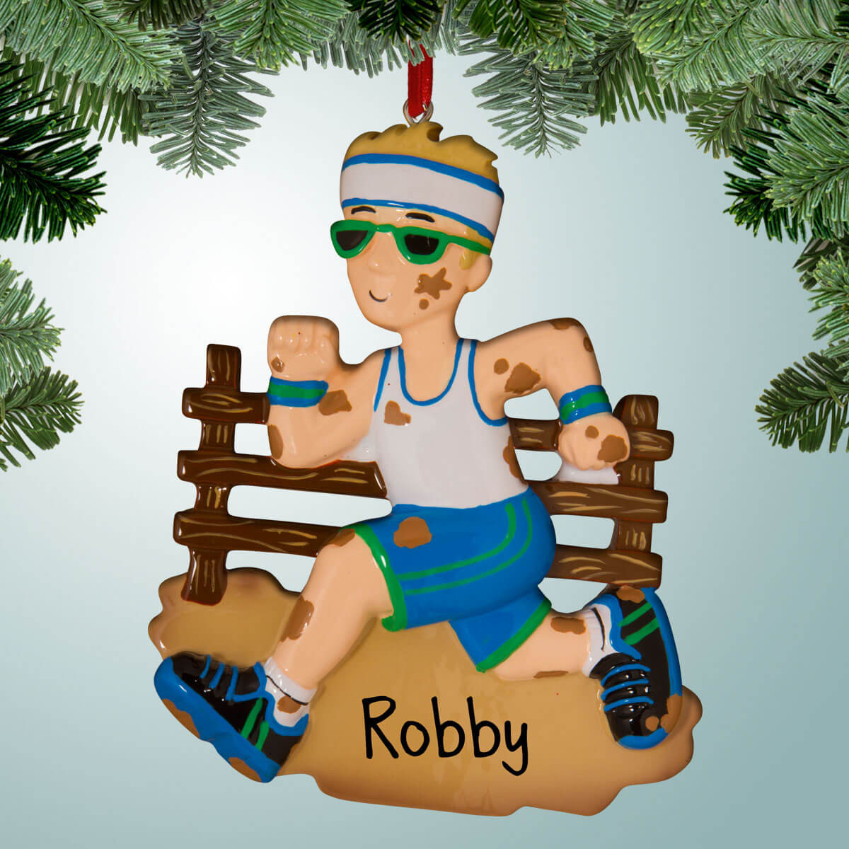 Does trekking through the mud actually look like a good time to you? It might not, but it certainly is a thrill for those mudders out there that can't seem to prefer the clean roads to filthy trails and mud bogs! Show your mudder some love this holiday season with this original personalized Christmas ornament. Hopefully he won't get it dirty! This is a great gift idea for those that have competed in the Tough Mudder! Hair color cannot be changed.