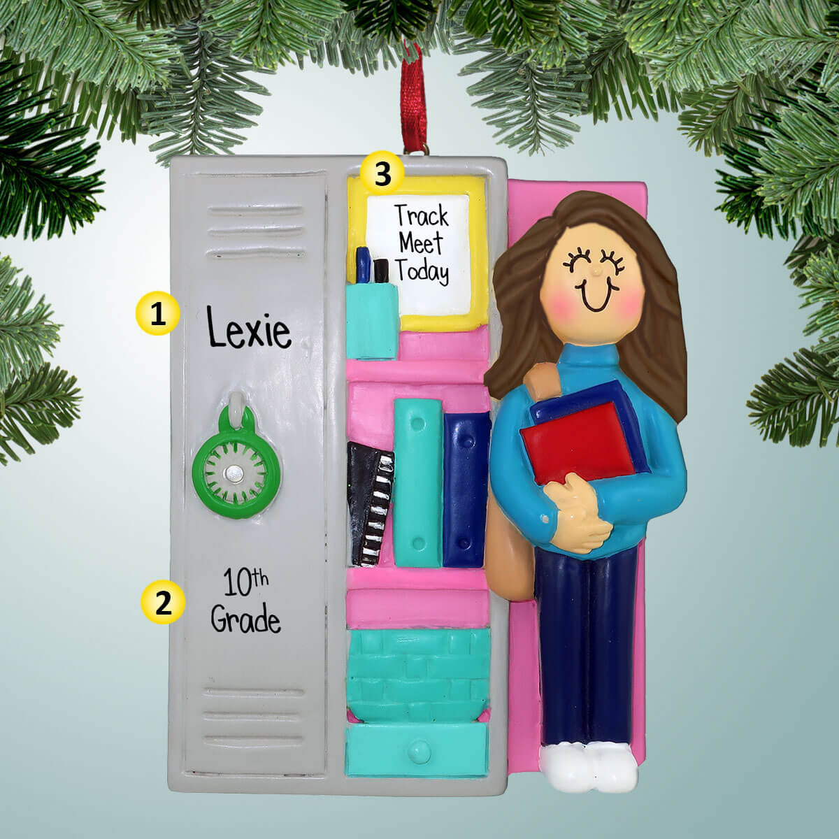 Personalized Open School Locker Girl - Brown Hair Christmas Ornament