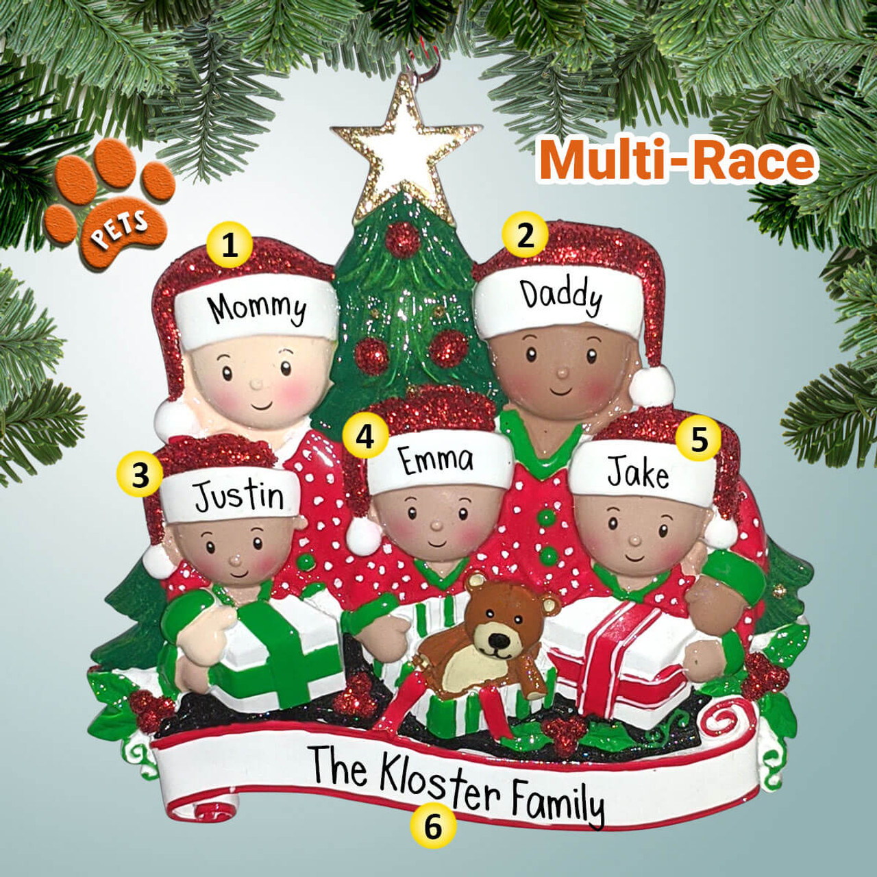 Personalized Opening Gifts Mixed Race Family - 5 Christmas Ornament