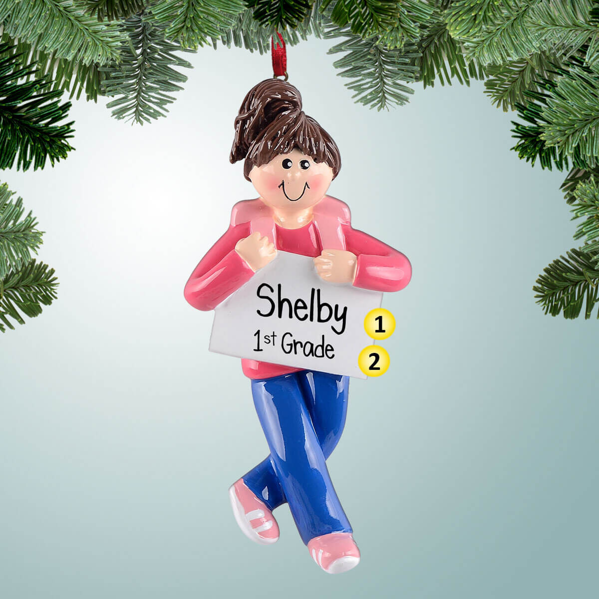 Personalized 1st Day of School Girl Holding Sign Christmas Ornament