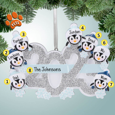 Personalized 2023 Penguin Family - 7 Christmas Ornament