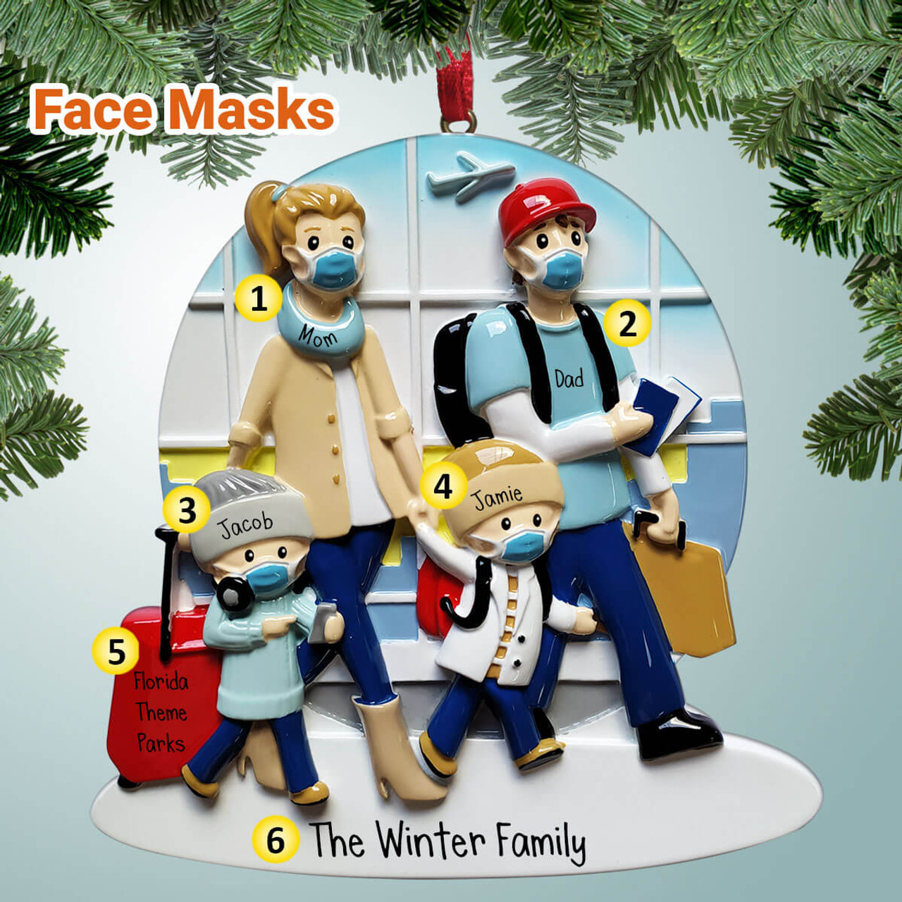 Wearing a face mask through the airport, and on the planes, has been a common sight these past couple of years. If your family of four was lucky enough to get out of the house and enjoy the outside world even if for a brief time, then this personalized Christmas ornament will make a great addition to your tree this year.