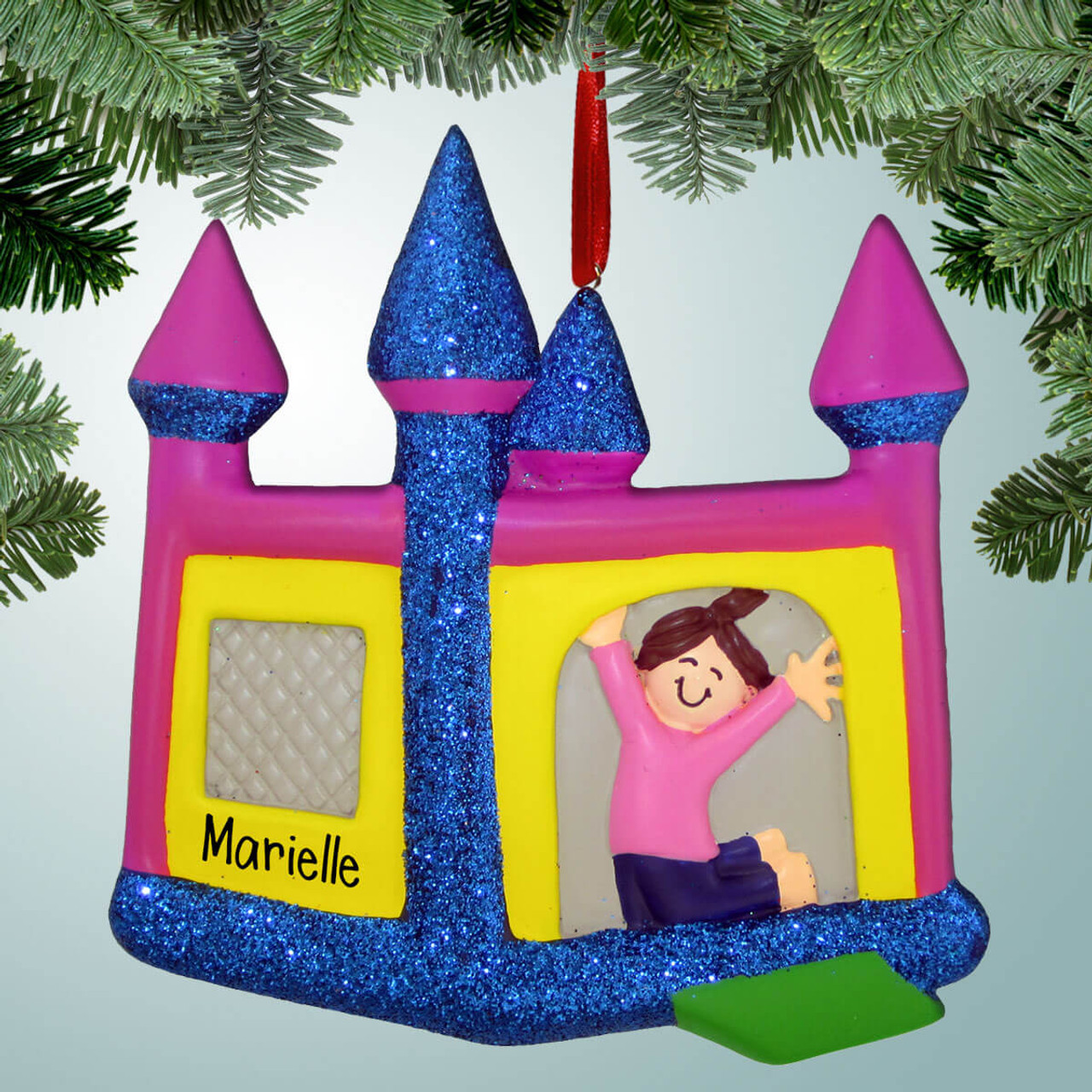 Personalized Bouncy House - Female Brown Christmas Ornament