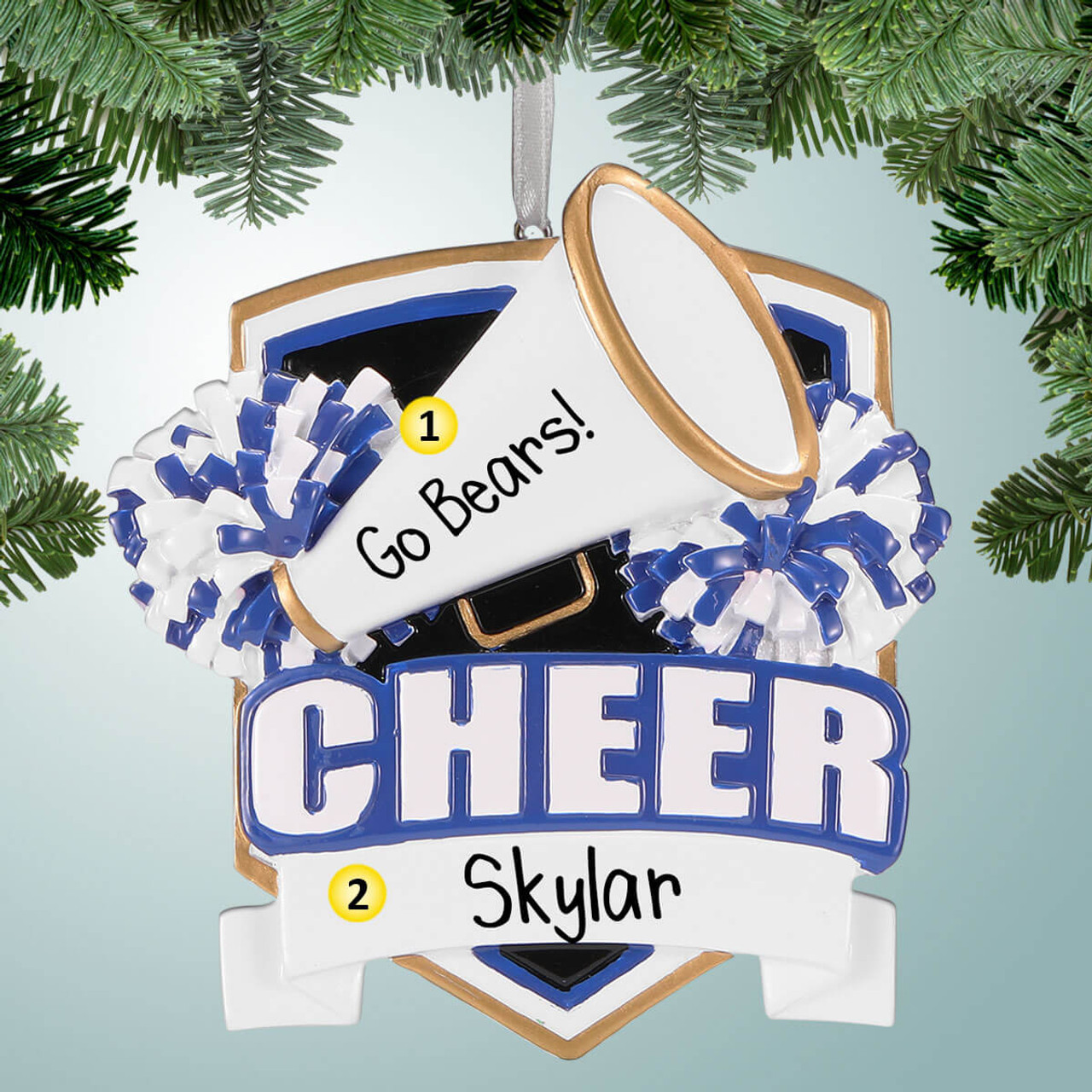 Personalized Cheer Banner with Megaphone - Blue Christmas Ornament