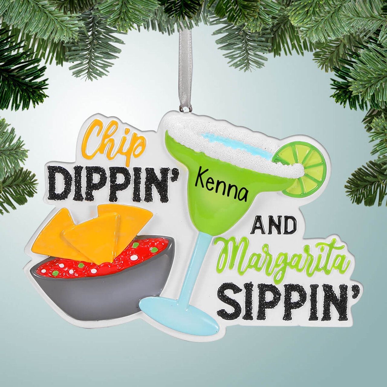 Personalized Chip Dippin and Margarita Sippin Christmas Ornament