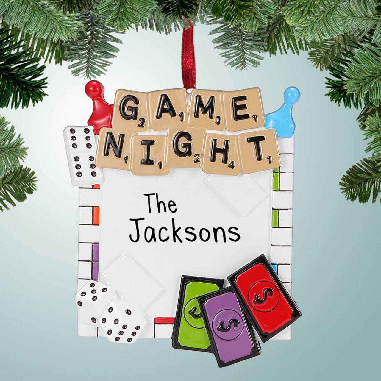 Celebrate your family's love for playing games together with a personalized Christmas ornament. This special ornament can capture the joy and togetherness you share during game nights. Each time you see it on your tree, it will bring back fun memories of spending time with your loved ones. Make this holiday season even more memorable by adding a unique touch to your decorations with a customized ornament that reflects your family's favorite activities.