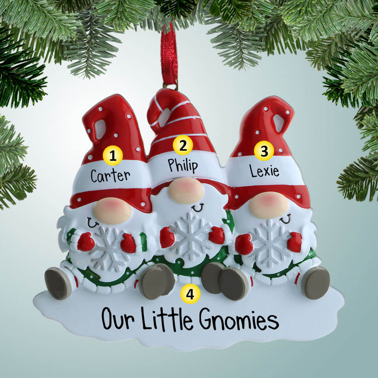 Celebrate the holiday season with a special touch by choosing a personalized Christmas ornament featuring a charming family of three as gnomes. This unique decoration adds a festive and whimsical element to your tree, bringing joy and warmth to your home. Share the magic of Christmas with your loved ones through this adorable and personalized ornament that reflects the spirit of togetherness and love.