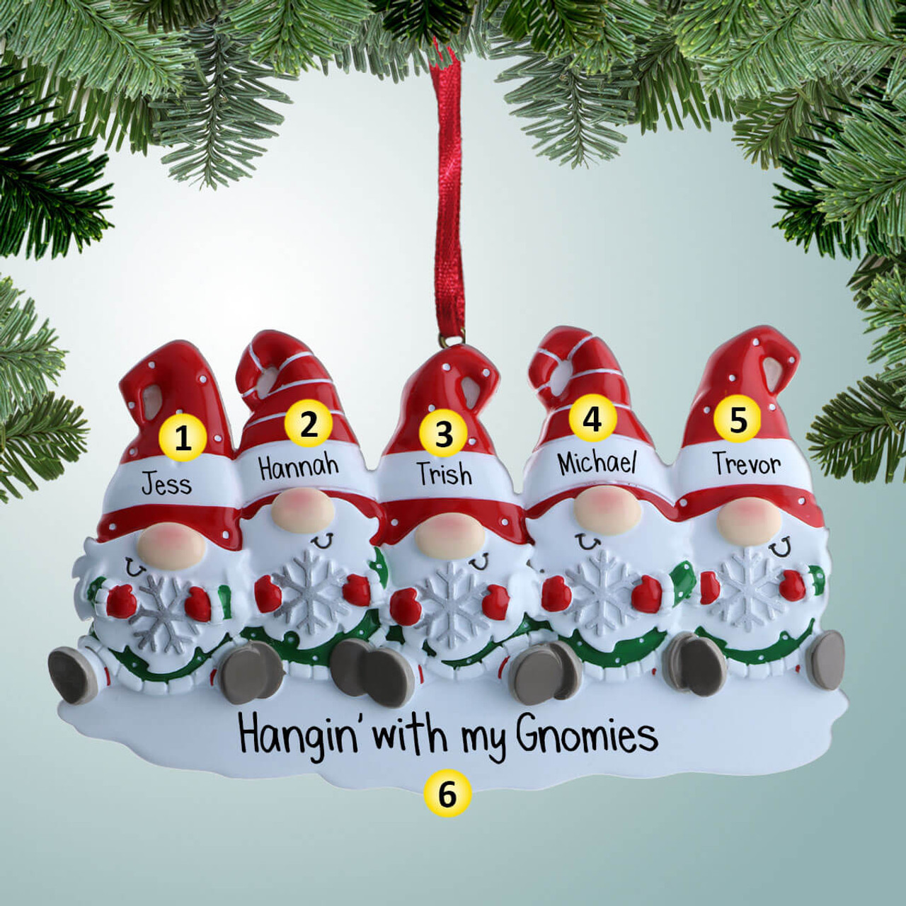 Looking for a special touch for your Christmas tree? How about a family of five personalized Christmas ornament featuring cute gnomes? These adorable ornaments can be customized with the names of each family member. They make the perfect addition to your holiday decorations and are sure to bring a smile to everyone's face.