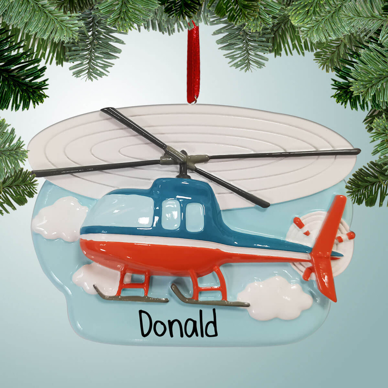 Personalized Helicopter in Clouds Christmas Ornament