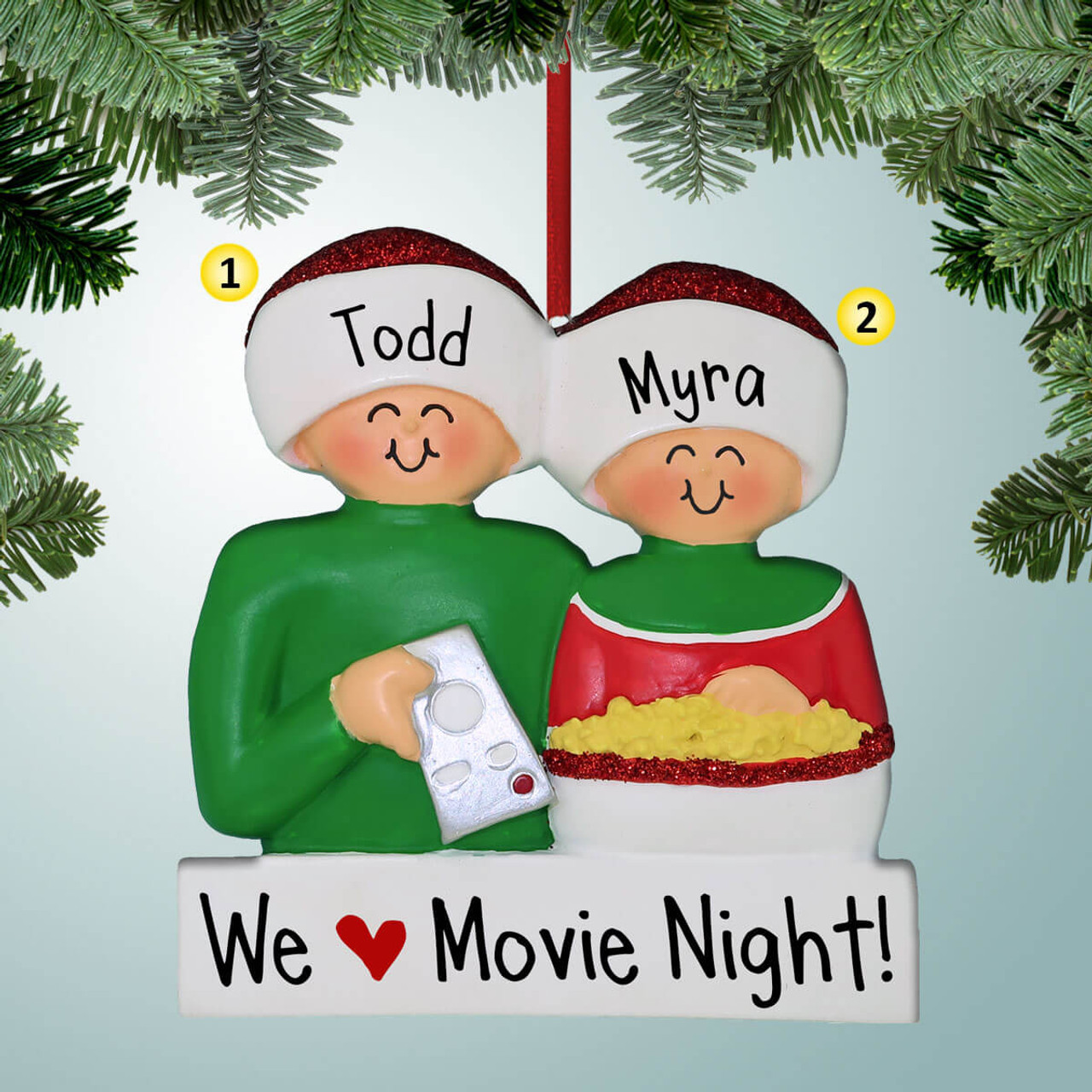 Those that control the remote, control the movie. So, if you do not have the remote in your hands, then you darn well have the giant bowl of popcorn in your lap! If you and your significant other love your movie nights, then this personalized ornament will be the Oscar on your tree!