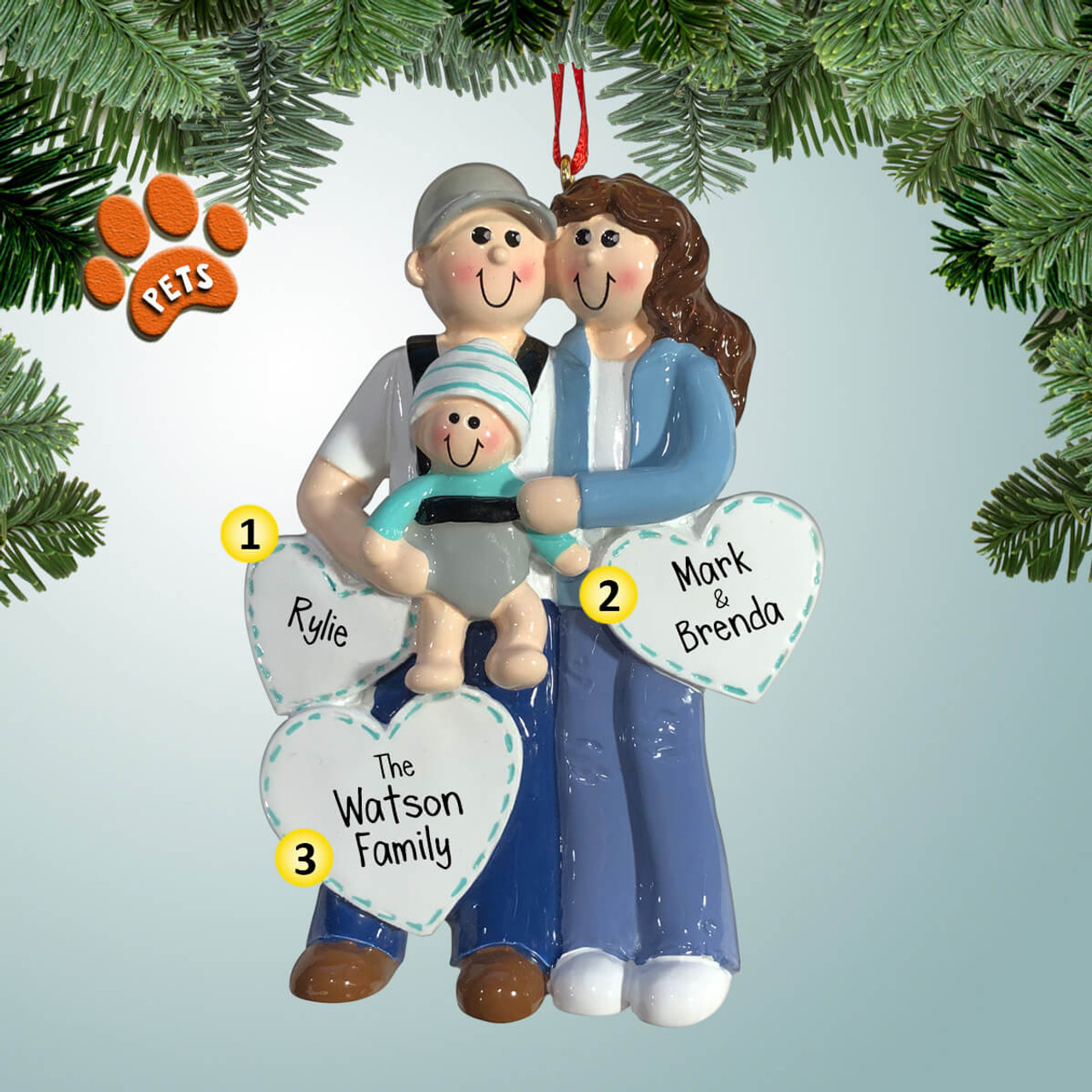 This unique Christmas ornament is designed specifically for new parents who have recently welcomed a baby into their family. It serves as a heartfelt keepsake to commemorate this joyous occasion, allowing parents to celebrate their first holiday season with their little one in a meaningful way.