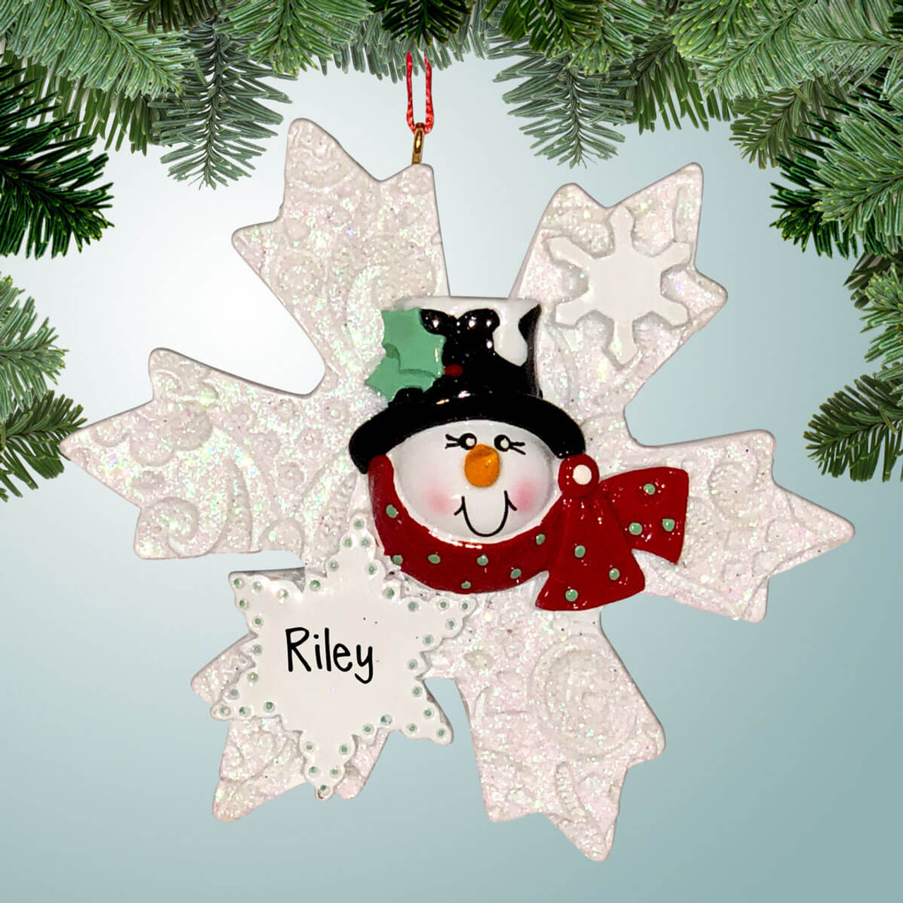 Personalized Single Snowman on Flake Christmas Ornament
