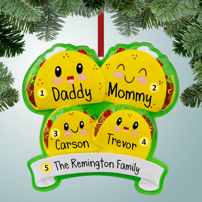 Personalized Taco Family - 4 Christmas Ornament