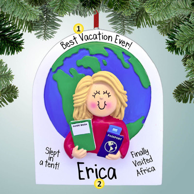 Personalized Traveler with Passport - Female Blonde Christmas Ornament