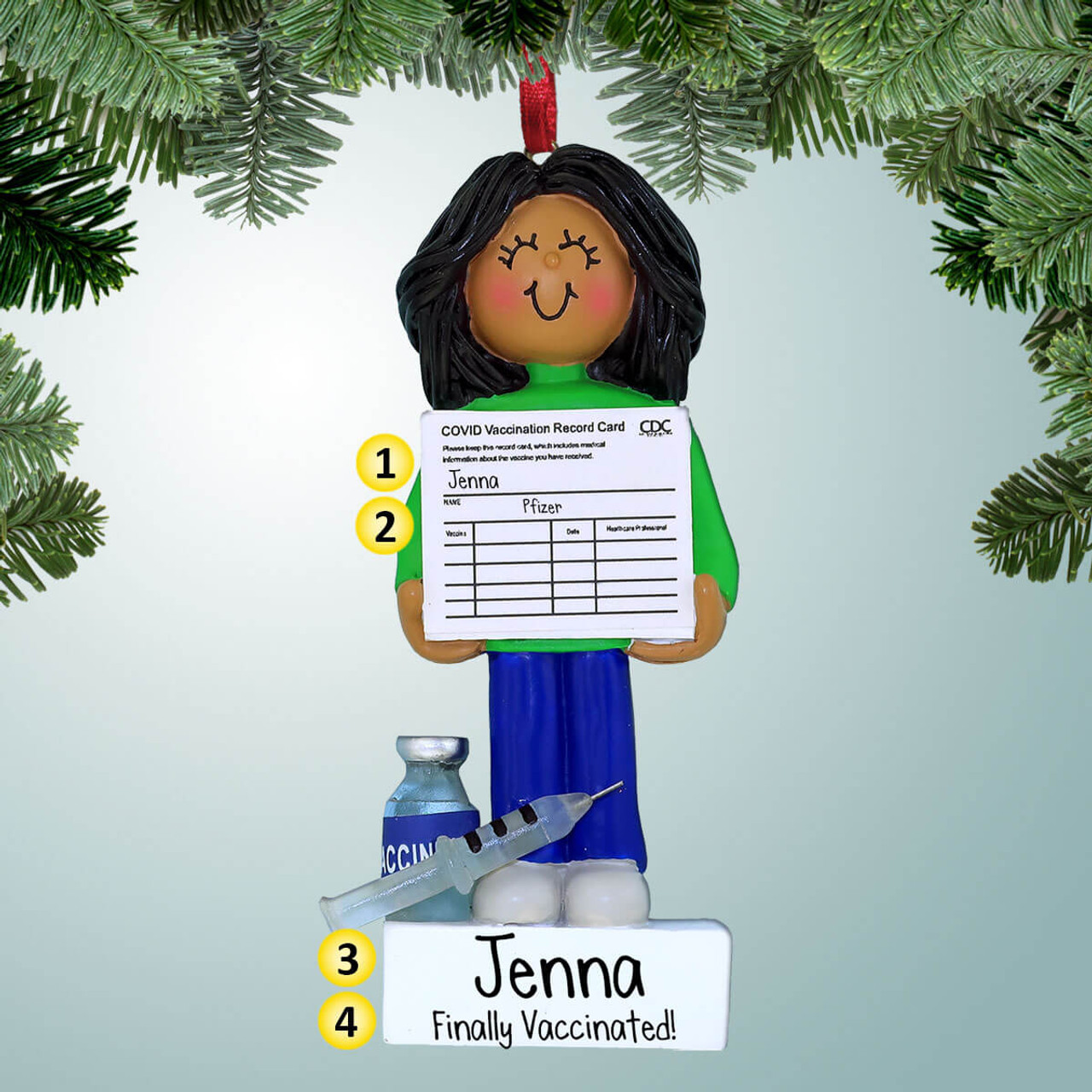 Personalized Vaccination Card - Female Dark Skin Christmas Ornament