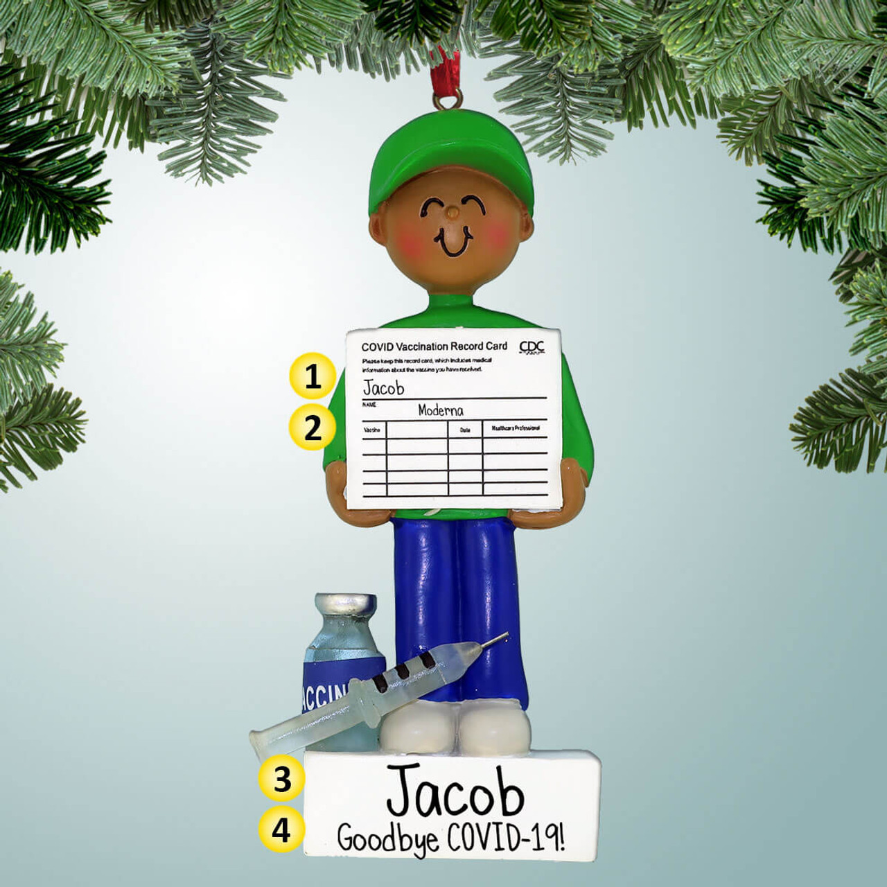 Personalized Vaccination Card - Male Dark Skin Christmas Ornament
