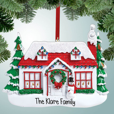 Personalized White House with Snowy Red Roof Christmas Ornament