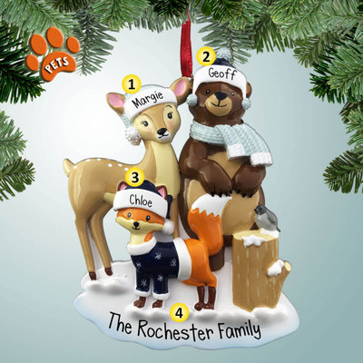 Personalized Woodland Animals Family - 3 Christmas Ornament