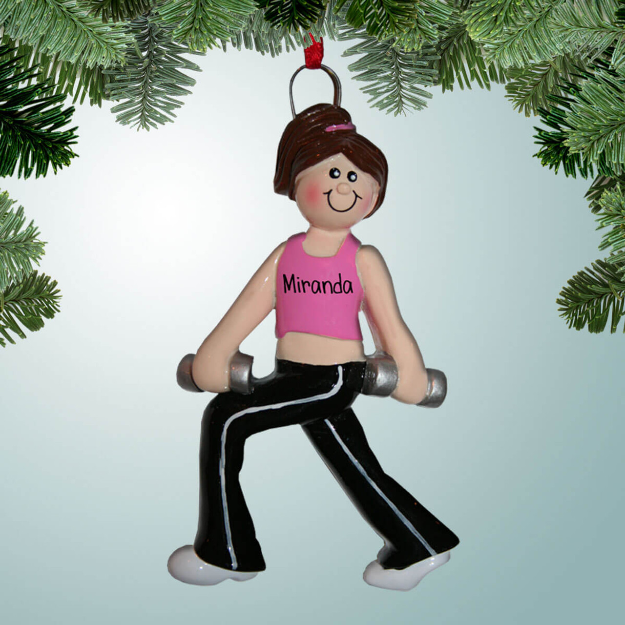 Personalized Power Lunger with Weights - Female Christmas Ornament