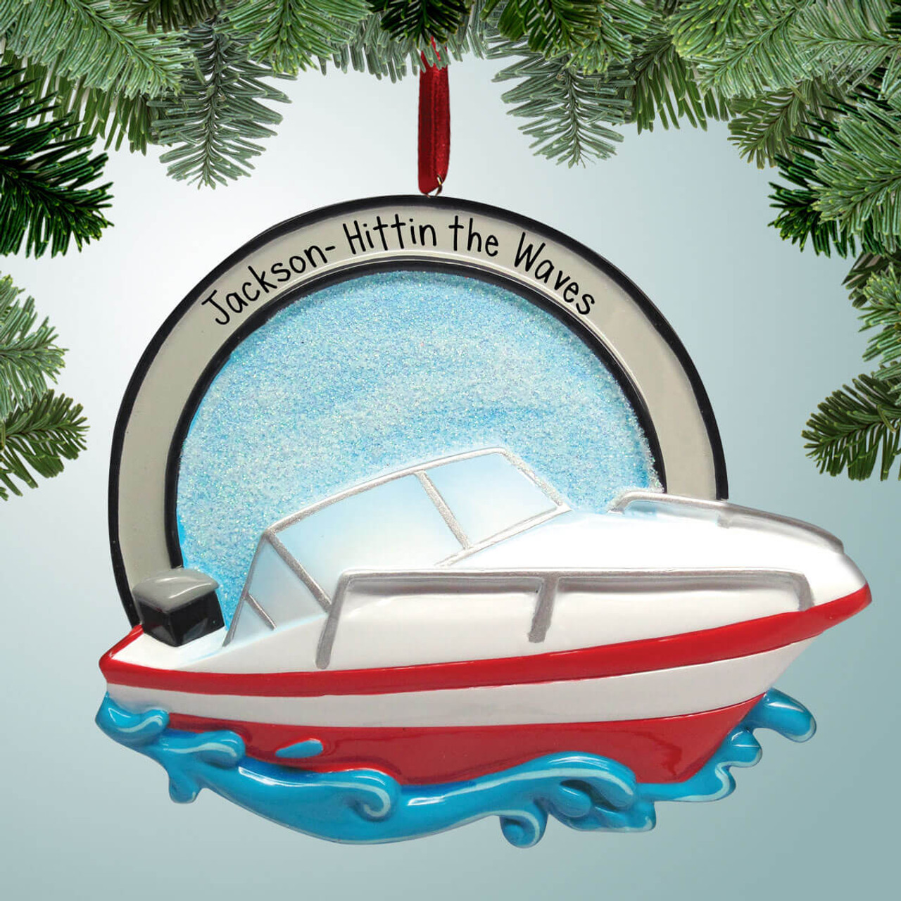 Not only does this slick boat look great cutting through the water, but the fact that it's doing it without a driver is more amazing! Get yourself into the captain's chair and add this personalized Christmas ornament to your shopping cart before this "ghost" boat ends up on your neighbor's tree!