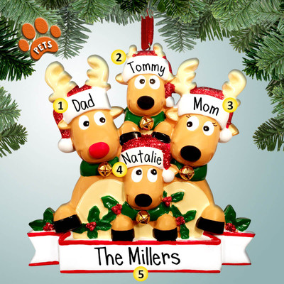 You can add up to 5 optional pets that we will arrange on the ornament. This ornament is for a Family of 4 only.