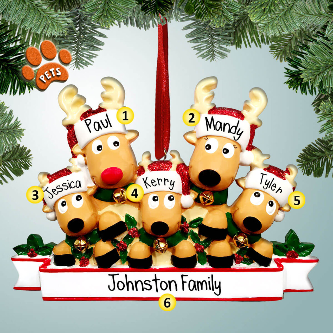 You can add up to 6 optional pets that we will arrange on the ornament. This ornament is for a Family of 5 only.