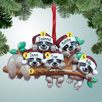 With five people laying around and doing nothing during the holiday season, you might want to think about being represented by a family of sloths on this years personalized Christmas ornament! This adorable family of lazy critters is totally excited to show off how easy it is to do absolutely nothing this December!