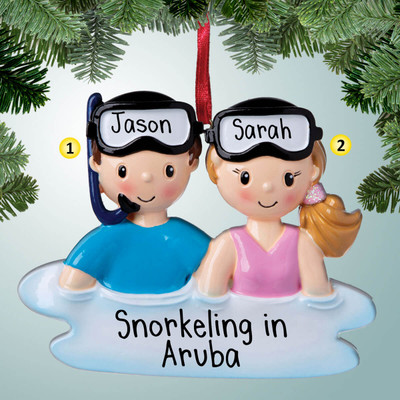These snorkelers were kind enough to take a break from viewing marine life to pose for this personalized Christmas ornament. If you had an amazing vacation this year where you got to explore the undersea world, then this ornament must surface to the top of your tree! Great for honeymoons, cruise excursions, or just a quick getaway with your significant other!