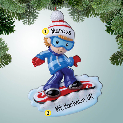 Personalized Snowboard Boy with Red Board Christmas Ornament