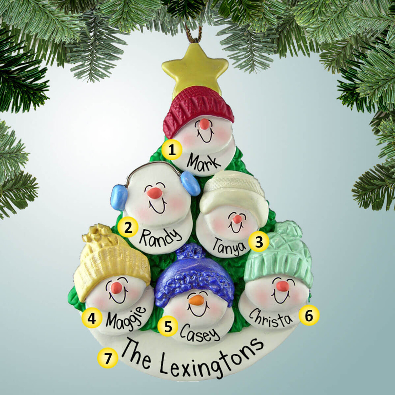 Personalized Snowman Family in Tree - 6 Christmas Ornament
